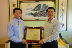 致贈『正聲廣播公司』感謝牌 「正聲廣播公司」董事長劉本善先生、總經理林慶祥先生一行,於十一月二日下午蒞臨本會,代表該公司捐贈新台幣二十萬元,照撫因公傷亡官兵暨家屬。本會由董事長代表接受,並對該公司熱心公益、關懷國軍、積極支持贊助本會,澤惠官兵,特致贈『行善後揚長而去』感謝牌,以表謝意。